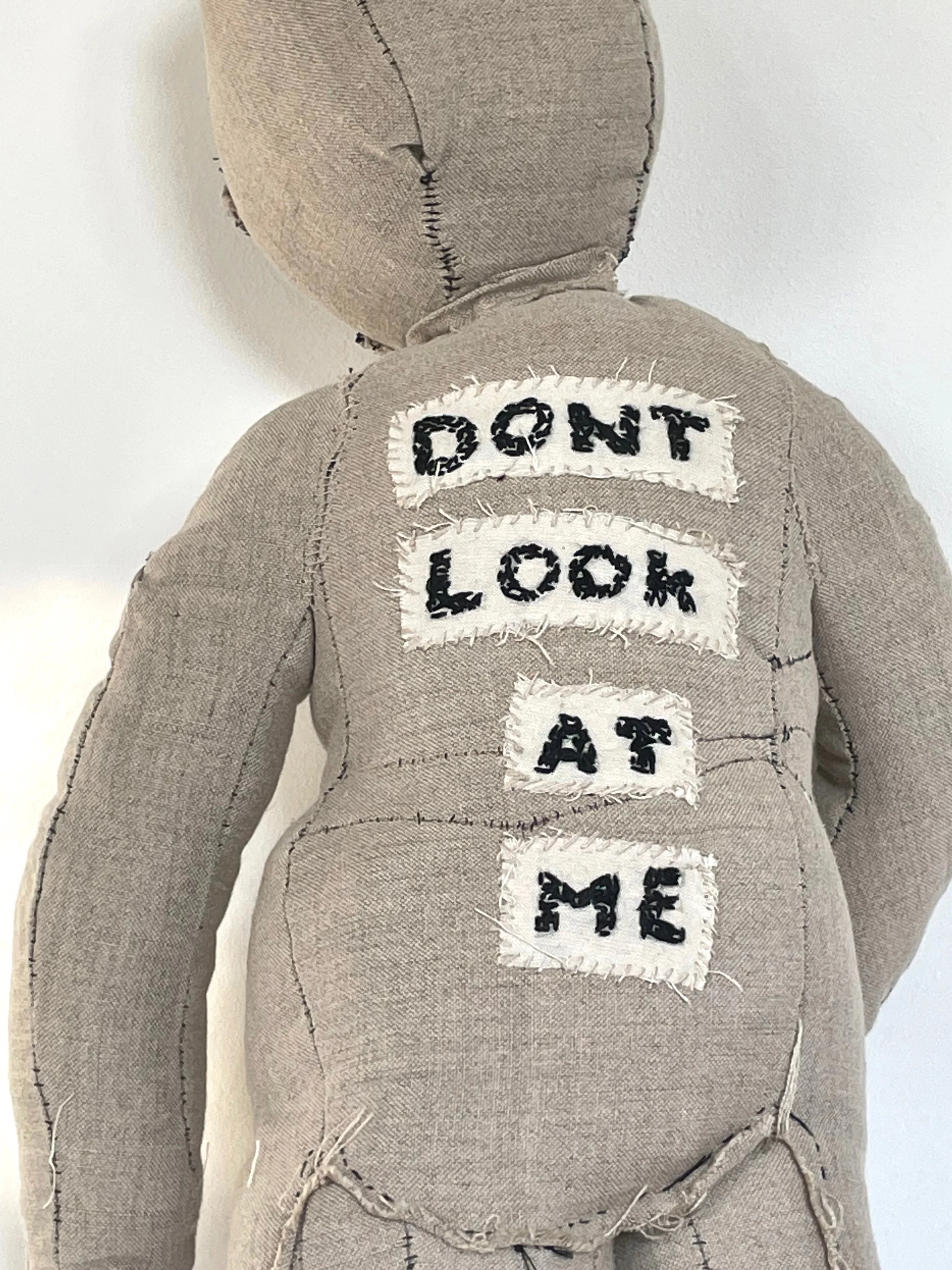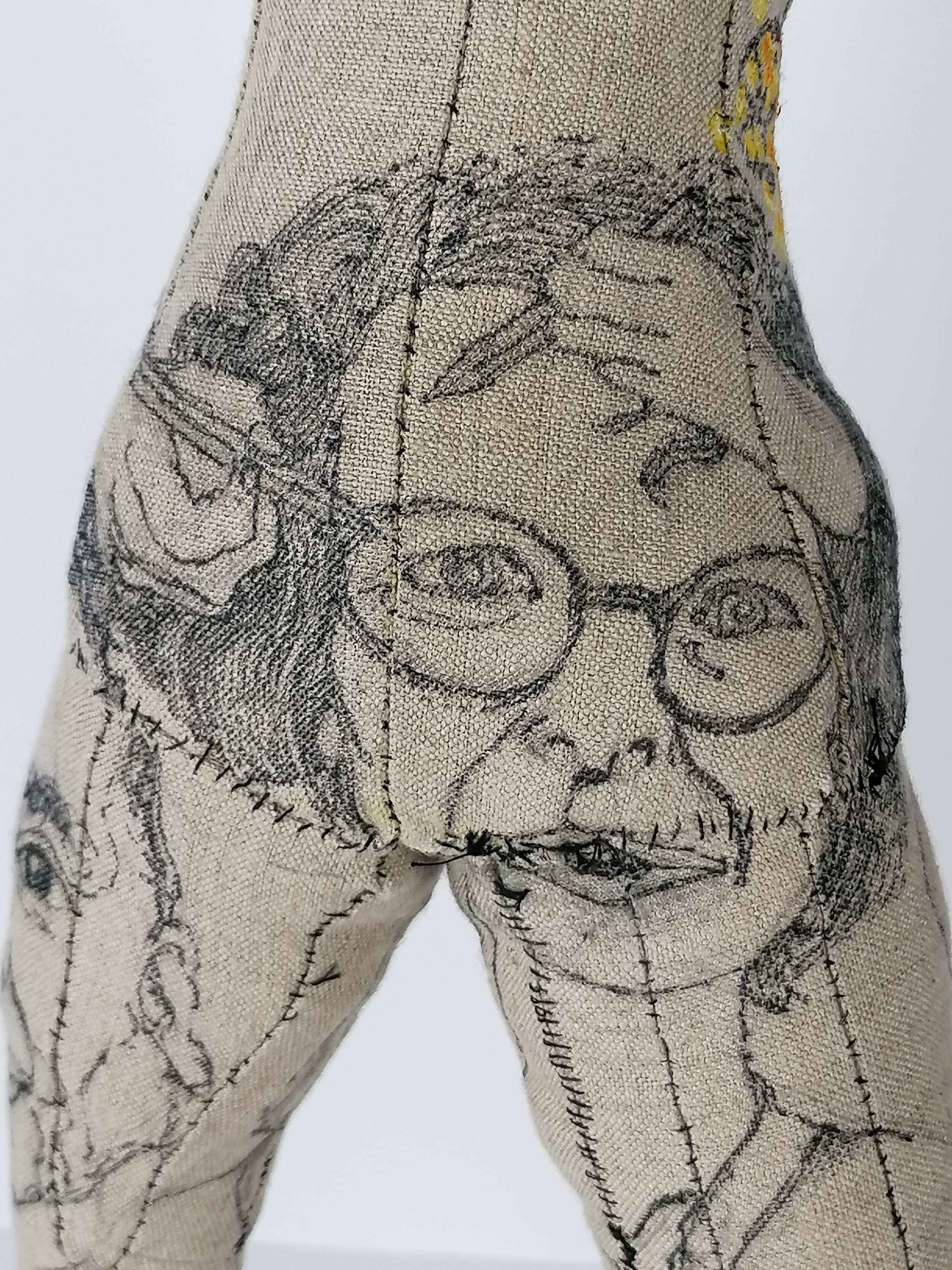 Calico, Cotton thread, Lace, Acrylic paint, Marker pen.